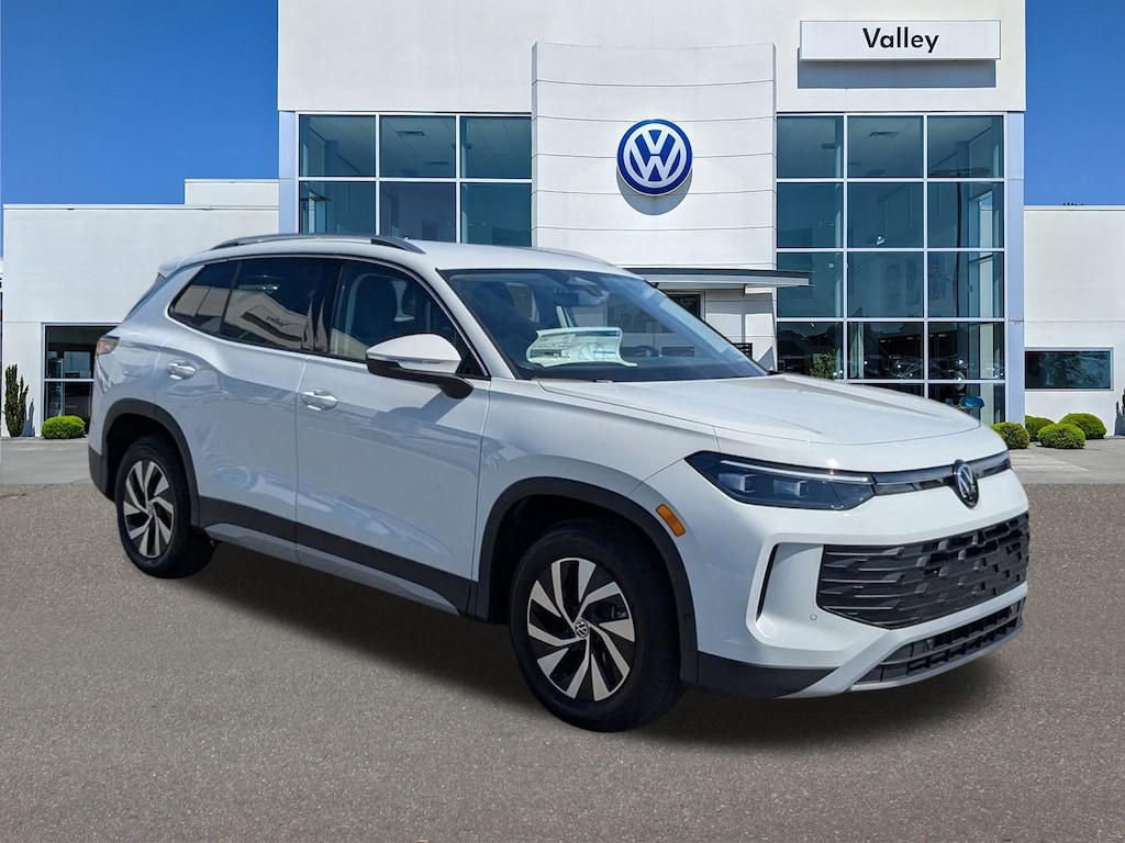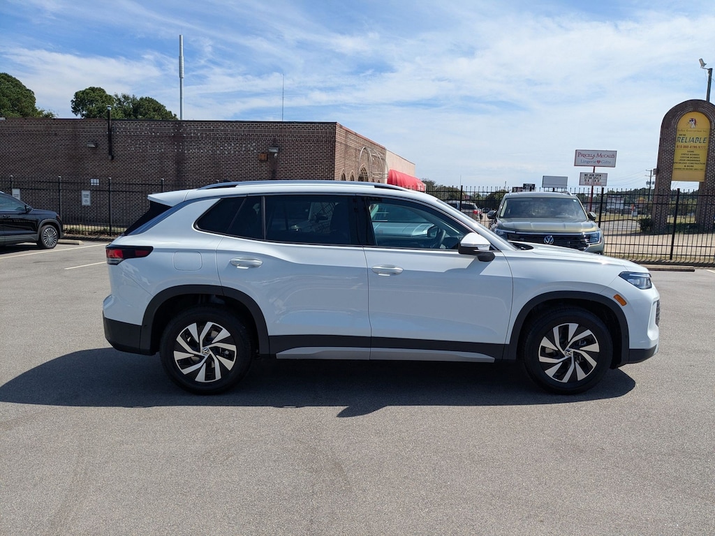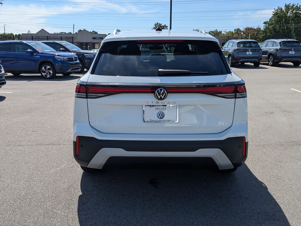 Pure White 2025 Volkswagen Tiguan 2.0T S FWD 8-Speed Automatic 2.0L TSI DOHC 4-Wheel Disc Brakes, 4-Wheel Independent Suspension, 7 Speakers, ABS brakes, Air Conditioning, Alloy wheels, AM/FM radio: SiriusXM with 360L, Auto High-beam Headlights, Automatic temperature control, Brake assist, Bumpers: body-color, Cloth Seating Surfaces, Compass, Delay-off headlights, Driver door bin, Driver vanity mirror, Dual front impact airbags, Dual front side impact airbags, Electronic Stability Control, Emergency communication system: VW Car-Net Safe & Secure 5-year, Exterior Parking Camera Rear, Four wheel independent suspension, Front anti-roll bar, Front Bucket Seats, Front Center Armrest, Front dual zone A/C, Front reading lights, Fully automatic headlights, Heated door mirrors, Heated Front Seats, Heated front seats, Illuminated entry, Knee airbag, Leather Shift Knob, Low tire pressure warning, Occupant sensing airbag, Outside temperature display, Overhead airbag, Overhead console, Panic alarm, Passenger door bin, Passenger vanity mirror, Power door mirrors, Power steering, Power windows, Radio data system, Radio: MIB4 Composition Media Touchscreen AM/FM, Rain sensing wipers, Rear anti-roll bar, Rear reading lights, Rear seat center armrest, Rear side impact airbag, Rear window defroster, Rear window wiper, Remote keyless entry, Speed control, Speed-sensing steering, Split folding rear seat, Spoiler, Steering wheel mounted audio controls, Tachometer, Telescoping steering wheel, Tilt steering wheel, Traction control, Trip computer, Turn signal indicator mirrors, Variably intermittent wipers, Wheels: 17" 2-Tone Machined Alloy.