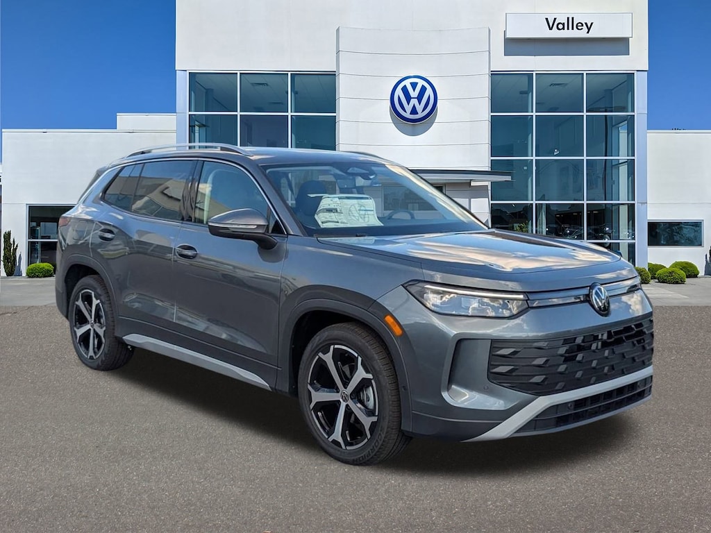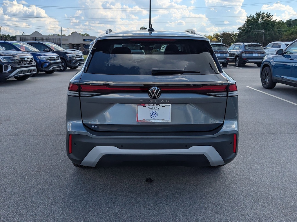Platinum Gray 2025 Volkswagen Tiguan 2.0T SE FWD 8-Speed Automatic 2.0L TSI DOHC 4-Wheel Disc Brakes, 4-Wheel Independent Suspension, 7 Speakers, ABS brakes, Air Conditioning, Alloy wheels, AM/FM radio: SiriusXM with 360L, Auto High-beam Headlights, Auto-dimming Rear-View mirror, Automatic temperature control, Brake assist, Bumpers: body-color, Compass, Delay-off headlights, Driver door bin, Driver vanity mirror, Dual front impact airbags, Dual front side impact airbags, Electronic Stability Control, Emergency communication system: VW Car-Net Safe & Secure 5-year, Exterior Parking Camera Rear, Four wheel independent suspension, Front anti-roll bar, Front Bucket Seats, Front Center Armrest, Front dual zone A/C, Front reading lights, Fully automatic headlights, Heated door mirrors, Heated Front Seats, Heated front seats, Illuminated entry, Knee airbag, Leather Shift Knob, Low tire pressure warning, Occupant sensing airbag, Outside temperature display, Overhead airbag, Overhead console, Panic alarm, Passenger door bin, Passenger vanity mirror, Perforated V-Tex Leatherette Seating Surfaces, Power door mirrors, Power driver seat, Power Liftgate, Power steering, Power windows, Radio data system, Radio: MIB4 Composition Media Touchscreen AM/FM, Rain sensing wipers, Rear anti-roll bar, Rear reading lights, Rear seat center armrest, Rear side impact airbag, Rear window defroster, Rear window wiper, Remote keyless entry, Security system, Speed control, Speed-sensing steering, Split folding rear seat, Spoiler, Steering wheel mounted audio controls, Tachometer, Telescoping steering wheel, Tilt steering wheel, Traction control, Trip computer, Turn signal indicator mirrors, Variably intermittent wipers, Wheels: 19" 2-Tone Machined Alloy.
