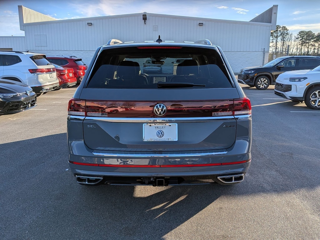 Gray 2026 Volkswagen Atlas 2.0T SEL Premium R-Line AWD 8-Speed Automatic with Tiptronic 2.0L TSI 10 Speakers, 3rd row seats: split-bench, 4-Wheel Disc Brakes, 4-Wheel Independent Suspension, ABS brakes, Air Conditioning, Alloy wheels, AM/FM radio: SiriusXM with 360L, Auto High-beam Headlights, Auto-dimming Rear-View mirror, Automatic temperature control, Brake assist, Bumpers: body-color, Compass, Delay-off headlights, Driver door bin, Driver vanity mirror, Dual front impact airbags, Dual front side impact airbags, Electronic Stability Control, Emergency communication system: VW Car-Net Safe & Secure 5-year, Exterior Parking Camera Rear, Four wheel independent suspension, Front anti-roll bar, Front Bucket Seats, Front Center Armrest, Front dual zone A/C, Front fog lights, Front reading lights, Fully automatic headlights, Garage door transmitter: HomeLink, harman/kardon® Speakers, Heads-Up Display, Heated & Actively Ventilated Front Bucket Seats, Heated door mirrors, Heated front seats, Heated rear seats, Heated steering wheel, Illuminated entry, Leather steering wheel, Low tire pressure warning, Memory seat, Navigation System, Occupant sensing airbag, Outside temperature display, Overhead airbag, Overhead console, Panic alarm, Passenger door bin, Passenger vanity mirror, Perforated Vienna Leather Seating Surfaces, Power door mirrors, Power driver seat, Power Liftgate, Power moonroof: Panoramic, Power passenger seat, Power steering, Power windows, Radio data system, Radio: MIB3 Discover Pro w/Navigation, Rain sensing wipers, Rear air conditioning, Rear anti-roll bar, Rear audio controls, Rear reading lights, Rear seat center armrest, Rear window defroster, Rear window wiper, Remote keyless entry, Seat Inserts w/Diamond-Pattern Stitching, Security system, Speed control, Speed-sensing steering, Split folding rear seat, Spoiler, Sport steering wheel, Steering wheel mounted audio controls, Tachometer, Telescoping steering wheel, Tilt steering wheel, Traction control, Trip computer, Turn signal indicator mirrors, Variably intermittent wipers, Ventilated front seats, Wheels: 21" 2-Tone Machined Alloy.