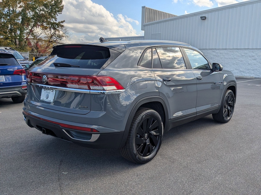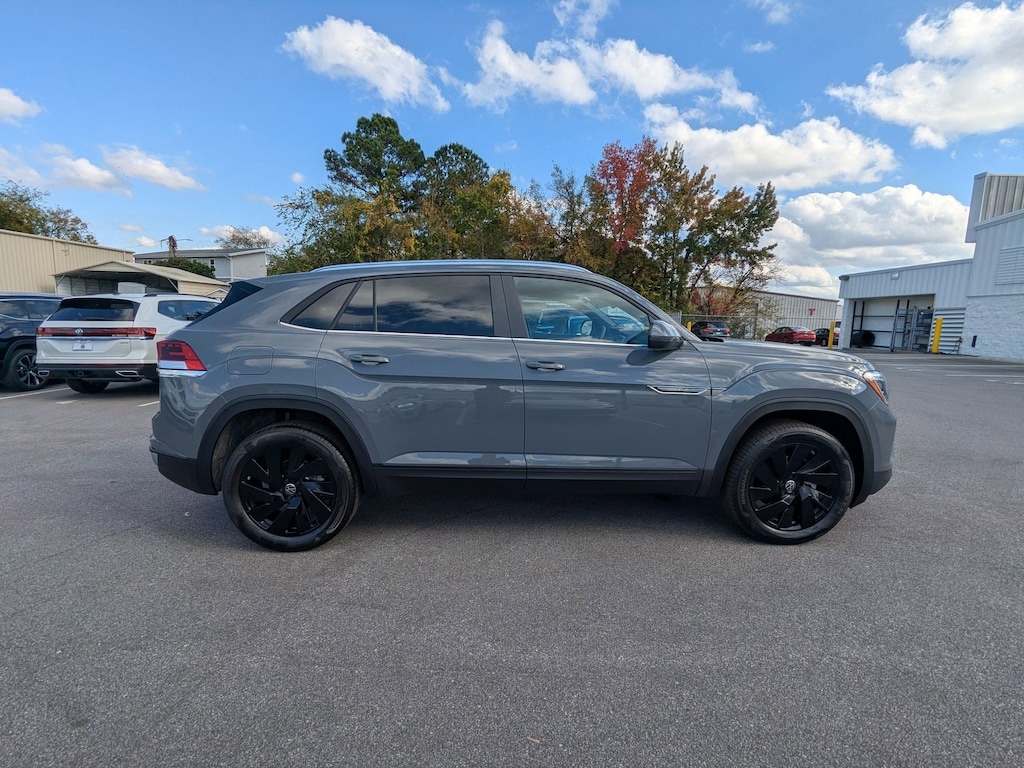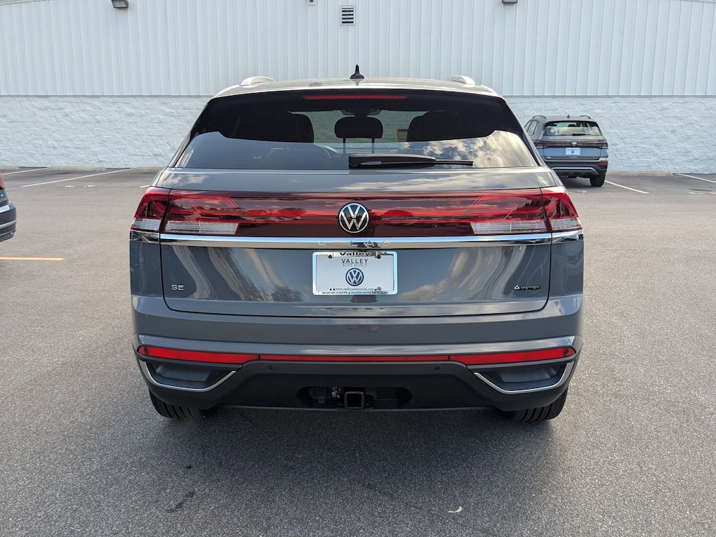 Gray 2026 Volkswagen Atlas Cross Sport 2.0T SE w/Technology AWD 8-Speed Automatic with Tiptronic 2.0L TSI 4-Wheel Disc Brakes, 4-Wheel Independent Suspension, 6 Speakers, ABS brakes, Air Conditioning, Alloy wheels, AM/FM radio: SiriusXM with 360L, Auto High-beam Headlights, Auto-dimming Rear-View mirror, Automatic temperature control, Brake assist, Bumpers: body-color, Compass, Delay-off headlights, Driver door bin, Driver vanity mirror, Dual front impact airbags, Dual front side impact airbags, Electronic Stability Control, Emergency communication system: VW Car-Net Safe & Secure 5-year, Exterior Parking Camera Rear, Four wheel independent suspension, Front anti-roll bar, Front Bucket Seats, Front Center Armrest, Front dual zone A/C, Front fog lights, Front reading lights, Fully automatic headlights, Garage door transmitter: HomeLink, Heated and Actively Ventilated Front Bucket Seats, Heated door mirrors, Heated front seats, Heated steering wheel, Illuminated entry, Low tire pressure warning, Occupant sensing airbag, Outside temperature display, Overhead airbag, Overhead console, Panic alarm, Passenger door bin, Passenger vanity mirror, Perforated V-Tex Leatherette Seating Surfaces, Power door mirrors, Power driver seat, Power Liftgate, Power steering, Power windows, Radio data system, Radio: MIB3 Composition Media, Rain sensing wipers, Rear anti-roll bar, Rear reading lights, Rear seat center armrest, Rear window defroster, Rear window wiper, Remote keyless entry, Security system, Speed control, Speed-sensing steering, Split folding rear seat, Spoiler, Steering wheel mounted audio controls, Tachometer, Telescoping steering wheel, Tilt steering wheel, Traction control, Trip computer, Turn signal indicator mirrors, Variably intermittent wipers, Ventilated front seats, Wheels: 20" 5-Spoke 2-Tone Machined Alloy.