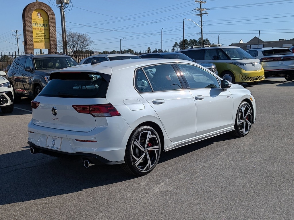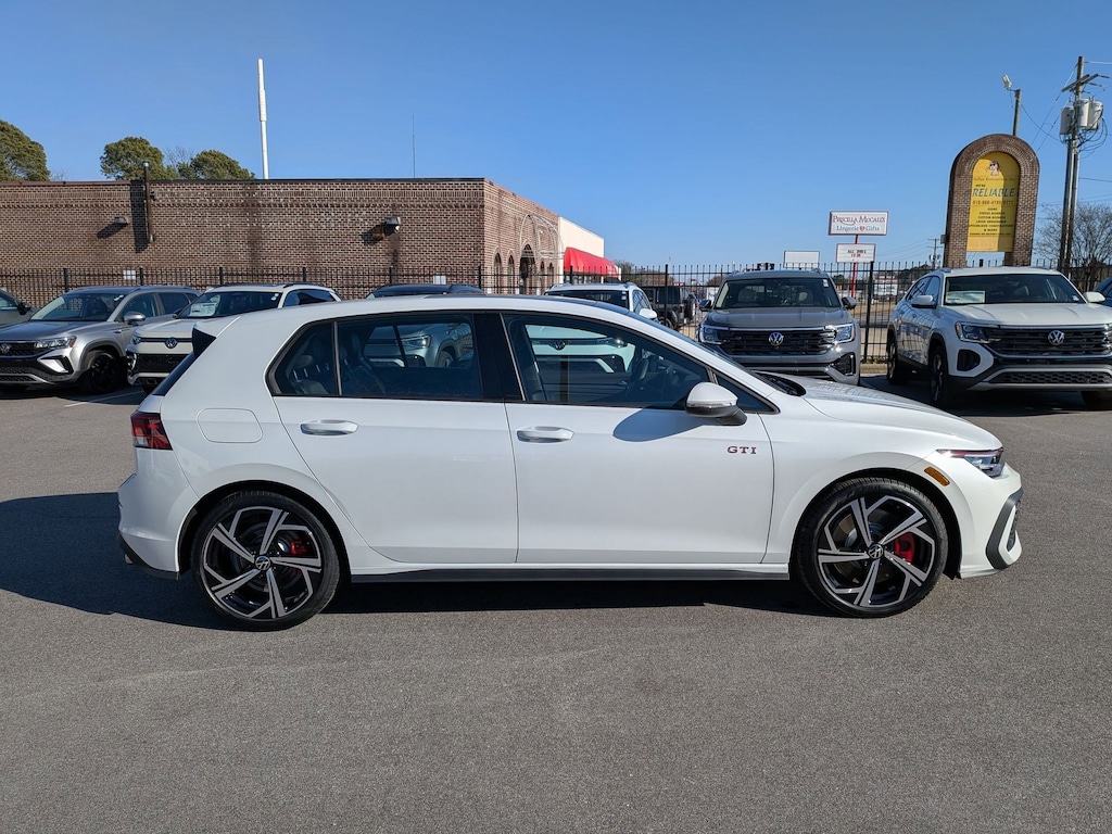 Opal White 2026 Volkswagen Golf GTI 2.0T SE FWD 7-Speed DSG Automatic with Tiptronic 2.0L TSI DOHC 4-Wheel Disc Brakes, 9 Speakers, ABS brakes, Air Conditioning, Alloy wheels, AM/FM radio: SiriusXM with 360L, ArtVelours Seating Surfaces, Auto High-beam Headlights, Auto-dimming Rear-View mirror, Automatic temperature control, Brake assist, Bumpers: body-color, Compass, Delay-off headlights, Driver door bin, Driver vanity mirror, Dual front impact airbags, Dual front side impact airbags, Electronic Stability Control, Emergency communication system: VW Car-Net Safe & Secure 5-year, Exterior Parking Camera Rear, Forward collision: FCW w/Autonomous Emergency Braking mitigation, Four wheel independent suspension, Front anti-roll bar, Front Bucket Seats, Front Center Armrest, Front fog lights, Front reading lights, Fully automatic headlights, harman/kardon® Speakers, Heated door mirrors, Heated front seats, Heated Front Top Sport Seats, Heated steering wheel, Illuminated entry, Leather steering wheel, Low tire pressure warning, Navigation System, Occupant sensing airbag, Outside temperature display, Overhead airbag, Overhead console, Panic alarm, Passenger door bin, Passenger vanity mirror, Power door mirrors, Power driver seat, Power moonroof: Panoramic, Power passenger seat, Power steering, Power windows, Radio data system, Radio: MIB3 Discover Pro AM/FM/HD w/12.9" Touchscreen Navigation, Rain sensing wipers, Rear anti-roll bar, Rear reading lights, Rear seat center armrest, Rear window defroster, Rear window wiper, Remote keyless entry, Security system, Speed control, Speed-sensing steering, Speed-Sensitive Wipers, Split folding rear seat, Spoiler, Sport steering wheel, Steering wheel mounted audio controls, Tachometer, Telescoping steering wheel, Tilt steering wheel, Traction control, Trip computer, Turn signal indicator mirrors, Variably intermittent wipers, Wheels: 18" 2-Tone Diamond-Turned Alloy.