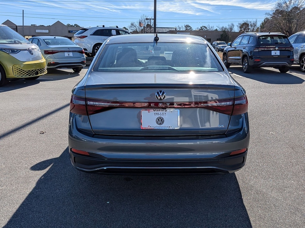 Platinum Gray 2026 Volkswagen Jetta 1.5T SE FWD 8-Speed Automatic with Tiptronic 1.5L I-4 DI DOHC Turbocharged 4-Wheel Disc Brakes, 6 Speakers, ABS brakes, Active Blind Spot Monitor, Air Conditioning, Alloy wheels, AM/FM radio: SiriusXM with 360L, Auto-dimming Rear-View mirror, Automatic temperature control, Brake assist, Bumpers: body-color, CloudTex and V-Tex Leatherette Seat Trim, Delay-off headlights, Driver door bin, Driver vanity mirror, Dual front impact airbags, Dual front side impact airbags, Electronic Stability Control, Emergency communication system: VW Car-Net Safe & Secure 5-year, Exterior Parking Camera Rear, Front anti-roll bar, Front Bucket Seats, Front Center Armrest, Front dual zone A/C, Front wheel independent suspension, Fully automatic headlights, Heated door mirrors, Heated Front Seats, Heated front seats, Illuminated entry, Leather Shift Knob, Leather steering wheel, Low tire pressure warning, Occupant sensing airbag, Outside temperature display, Overhead airbag, Overhead console, Panic alarm, Passenger door bin, Passenger vanity mirror, Power door mirrors, Power driver seat, Power moonroof: Panoramic, Power steering, Power windows, Radio data system, Radio: MIB3 Composition Media with 8" Touchscreen, Rain sensing wipers, Rear anti-roll bar, Rear reading lights, Rear seat center armrest, Rear window defroster, Remote keyless entry, Speed control, Speed-sensing steering, Split folding rear seat, Steering wheel mounted audio controls, Tachometer, Telescoping steering wheel, Tilt steering wheel, Traction control, Trip computer, Variably intermittent wipers, Wheels: 17" Twin 5-Spoke 2-Tone Machined Alloy.