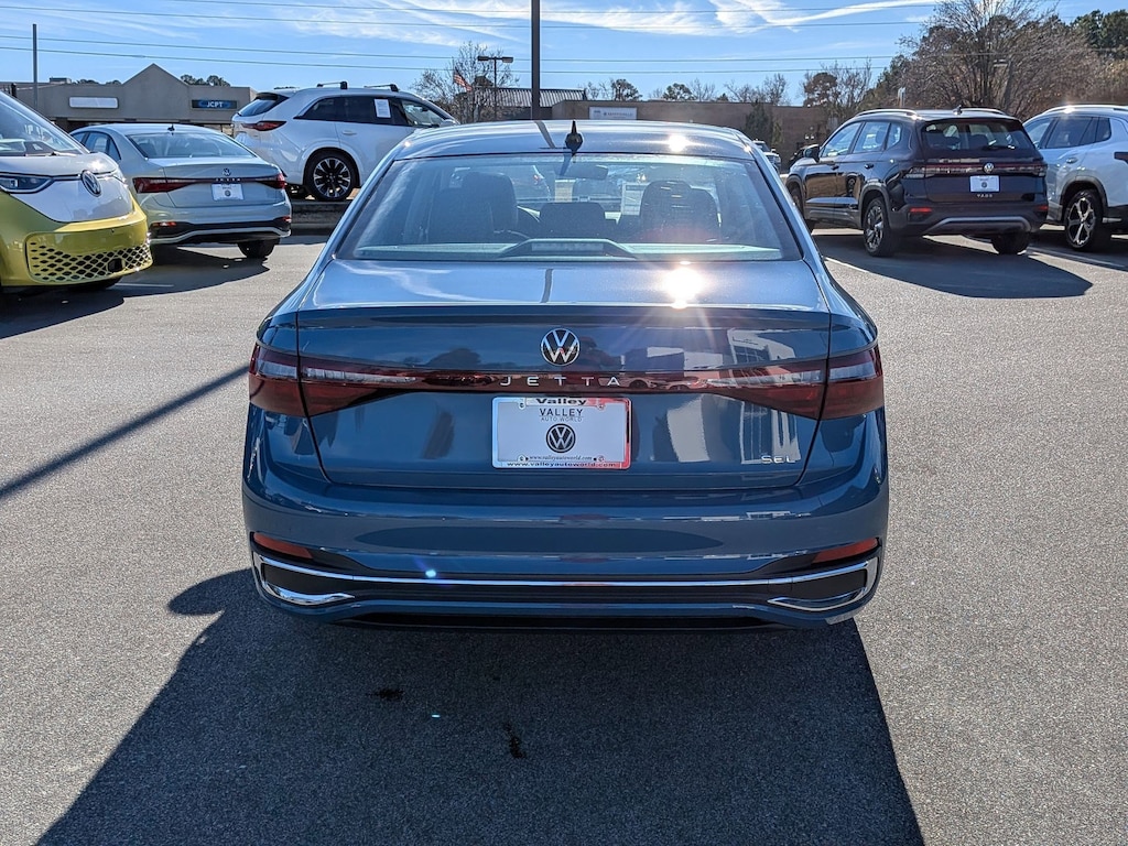 Blue 2026 Volkswagen Jetta 1.5T SEL FWD 8-Speed Automatic with Tiptronic 1.5L I-4 DI DOHC Turbocharged Leather, 4-Wheel Disc Brakes, 8 Speakers, ABS brakes, Active Blind Spot Monitor, Air Conditioning, Alloy wheels, AM/FM radio: SiriusXM with 360L, Auto High-beam Headlights, Auto-dimming Rear-View mirror, Automatic temperature control, Brake assist, Bumpers: body-color, Delay-off headlights, Driver door bin, Driver vanity mirror, Dual front impact airbags, Dual front side impact airbags, Electronic Stability Control, Emergency communication system: VW Car-Net Safe & Secure 5-year, Exterior Parking Camera Rear, Front anti-roll bar, Front Bucket Seats, Front Center Armrest, Front dual zone A/C, Front reading lights, Front wheel independent suspension, Fully automatic headlights, Heated and Actively Ventilated Front Seats, Heated door mirrors, Heated front seats, Heated rear seats, Heated steering wheel, Illuminated entry, Leather Shift Knob, Leather steering wheel, Low tire pressure warning, Memory seat, Navigation System, Occupant sensing airbag, Outside temperature display, Overhead airbag, Overhead console, Panic alarm, Passenger door bin, Passenger vanity mirror, Power door mirrors, Power driver seat, Power moonroof: Panoramic, Power steering, Power windows, Radio data system, Radio: MIB3 Discover Media with 8" Touchscreen Navigation, Rain sensing wipers, Rear anti-roll bar, Rear reading lights, Rear seat center armrest, Rear window defroster, Remote keyless entry, Security system, Speed control, Speed-sensing steering, Split folding rear seat, Steering wheel mounted audio controls, Tachometer, Telescoping steering wheel, Tilt steering wheel, Traction control, Trip computer, Turn signal indicator mirrors, Variably intermittent wipers, Ventilated front seats, Vienna Leather Seat Trim, VW Premium Sound System with Subwoofer, Wheels: 18" 2-Tone Machined Alloy, Leather.