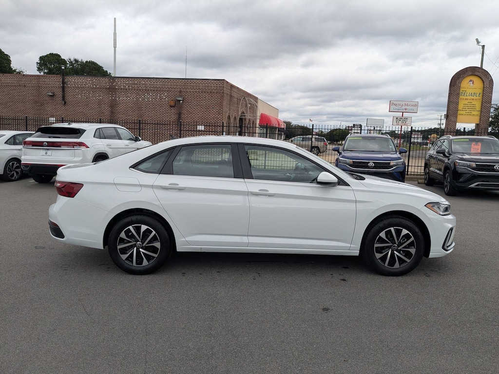 Pure White 2026 Volkswagen Jetta 1.5T S FWD 8-Speed Automatic with Tiptronic 1.5L I-4 DI DOHC Turbocharged Cloth, 4 Speakers, 4-Wheel Disc Brakes, ABS brakes, Active Blind Spot Monitor, Air Conditioning, Alloy wheels, Auto-dimming Rear-View mirror, Automatic temperature control, Brake assist, Bumpers: body-color, Cloth Seat Trim, Delay-off headlights, Driver door bin, Driver vanity mirror, Dual front impact airbags, Dual front side impact airbags, Electronic Stability Control, Emergency communication system: VW Car-Net Safe & Secure 5-year, Exterior Parking Camera Rear, Front anti-roll bar, Front Bucket Seats, Front Center Armrest, Front dual zone A/C, Front Seats, Front wheel independent suspension, Fully automatic headlights, Heated door mirrors, Illuminated entry, Leather Shift Knob, Leather steering wheel, Low tire pressure warning, Occupant sensing airbag, Outside temperature display, Overhead airbag, Overhead console, Panic alarm, Passenger door bin, Passenger vanity mirror, Power door mirrors, Power steering, Power windows, Radio data system, Radio: MIB3 Composition Color w/8" Touchscreen, Rain sensing wipers, Rear anti-roll bar, Rear reading lights, Rear window defroster, Remote keyless entry, Speed control, Speed-sensing steering, Split folding rear seat, Steering wheel mounted audio controls, Tachometer, Telescoping steering wheel, Tilt steering wheel, Traction control, Trip computer, Variably intermittent wipers, Wheels: 16" 2-Tone Machined Alloy, Cloth.