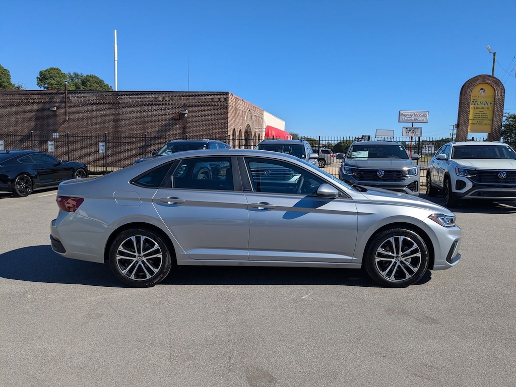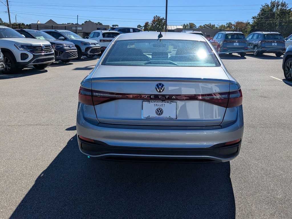 Silver 2026 Volkswagen Jetta 1.5T Sport FWD 8-Speed Automatic with Tiptronic 1.5L I-4 DI DOHC Turbocharged Cloth, 4 Speakers, 4-Wheel Disc Brakes, ABS brakes, Active Blind Spot Monitor, Air Conditioning, Alloy wheels, Auto-dimming Rear-View mirror, Automatic temperature control, Brake assist, Bumpers: body-color, Cloth Seat Trim, Delay-off headlights, Driver door bin, Driver vanity mirror, Dual front impact airbags, Dual front side impact airbags, Electronic Stability Control, Emergency communication system: VW Car-Net Safe & Secure 5-year, Exterior Parking Camera Rear, Front anti-roll bar, Front Bucket Seats, Front Center Armrest, Front dual zone A/C, Front wheel independent suspension, Fully automatic headlights, Heated door mirrors, Heated Front Seats, Heated front seats, Illuminated entry, Leather Shift Knob, Leather steering wheel, Low tire pressure warning, Occupant sensing airbag, Outside temperature display, Overhead airbag, Overhead console, Panic alarm, Passenger door bin, Passenger vanity mirror, Power door mirrors, Power steering, Power windows, Radio data system, Radio: MIB3 Composition Color w/8" Touchscreen, Rain sensing wipers, Rear anti-roll bar, Rear reading lights, Rear seat center armrest, Rear window defroster, Remote keyless entry, Speed control, Speed-sensing steering, Split folding rear seat, Steering wheel mounted audio controls, Tachometer, Telescoping steering wheel, Tilt steering wheel, Traction control, Trip computer, Variably intermittent wipers, Wheels: 17" 2-Tone Machined Alloy, Cloth.