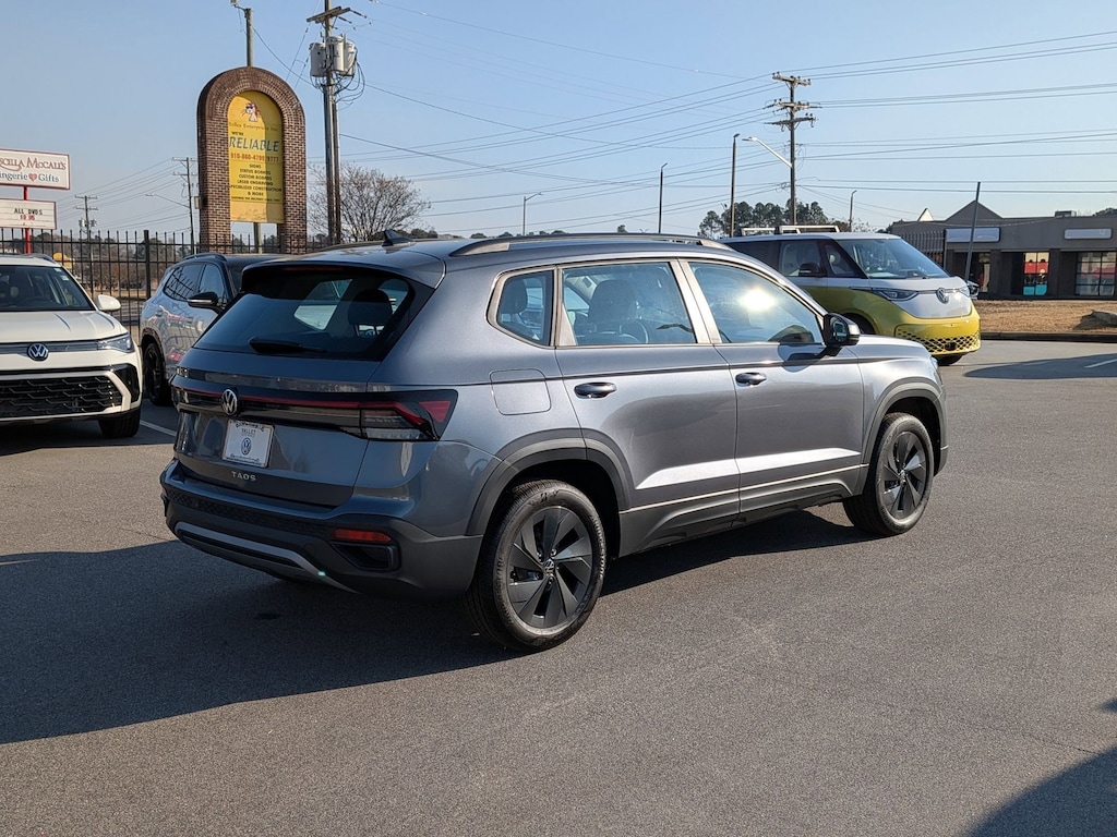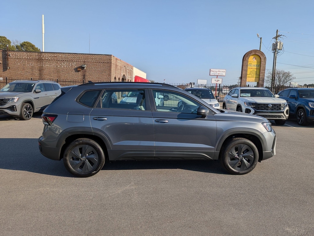 Platinum Gray 2026 Volkswagen Taos 1.5T S FWD 8-Speed Automatic with Tiptronic 1.5L I4 Turbocharged DOHC 16V LEV3-SULEV30 174hp 4-Wheel Disc Brakes, 6 Speakers, ABS brakes, Active Blind Spot Monitor, Air Conditioning, Alloy wheels, AM/FM radio, Auto High-beam Headlights, Brake assist, Bumpers: body-color, Cloth Seating Surfaces, Compass, Delay-off headlights, Driver door bin, Driver vanity mirror, Dual front impact airbags, Dual front side impact airbags, Electronic Stability Control, Emergency communication system: VW Car-Net Safe & Secure 5-year, Exterior Parking Camera Rear, Front anti-roll bar, Front Bucket Seats, Front Center Armrest, Front reading lights, Front Strut Rear Torsion Beam Suspension, Front wheel independent suspension, Fully automatic headlights, Heated steering wheel, Illuminated entry, Leather Shift Knob, Low tire pressure warning, Occupant sensing airbag, Outside temperature display, Overhead airbag, Overhead console, Panic alarm, Passenger door bin, Passenger vanity mirror, Power door mirrors, Power steering, Power windows, Radio data system, Radio: MIB3 Composition Color AM/FM, Rain sensing wipers, Rear anti-roll bar, Rear seat center armrest, Rear window defroster, Rear window wiper, Remote keyless entry, Speed control, Speed-sensing steering, Split folding rear seat, Spoiler, Steering wheel mounted audio controls, Tachometer, Telescoping steering wheel, Tilt steering wheel, Traction control, Trip computer, Variably intermittent wipers, Wheels: 17" Dark Silver Painted Alloy.