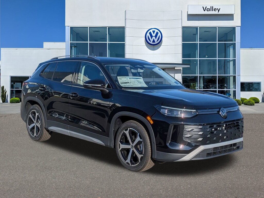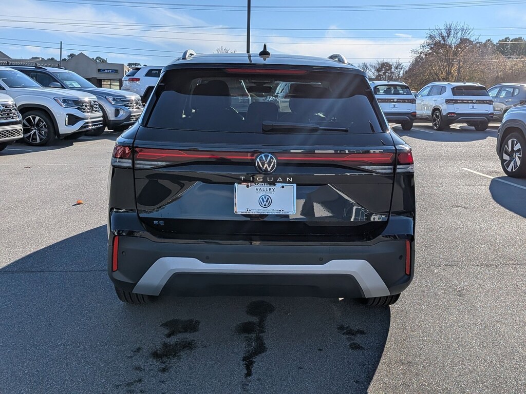 Deep Black 2026 Volkswagen Tiguan 2.0T SE FWD 8-Speed Automatic 2.0L TSI DOHC 4-Wheel Disc Brakes, 4-Wheel Independent Suspension, 7 Speakers, ABS brakes, Air Conditioning, Alloy wheels, AM/FM radio: SiriusXM with 360L, Auto High-beam Headlights, Auto-dimming Rear-View mirror, Automatic temperature control, Brake assist, Bumpers: body-color, Compass, Delay-off headlights, Driver door bin, Driver vanity mirror, Dual front impact airbags, Dual front side impact airbags, Electronic Stability Control, Emergency communication system, Exterior Parking Camera Rear, Four wheel independent suspension, Front anti-roll bar, Front Bucket Seats, Front Center Armrest, Front dual zone A/C, Front reading lights, Fully automatic headlights, Heated door mirrors, Heated Front Seats, Heated front seats, Illuminated entry, Knee airbag, Leather Shift Knob, Low tire pressure warning, Occupant sensing airbag, Outside temperature display, Overhead airbag, Overhead console, Panic alarm, Passenger door bin, Passenger vanity mirror, Perforated V-Tex Leatherette Seating Surfaces, Power door mirrors, Power driver seat, Power Liftgate, Power steering, Power windows, Radio data system, Radio: MIB4 Composition Media Touchscreen with AM/FM, Rain sensing wipers, Rear anti-roll bar, Rear reading lights, Rear seat center armrest, Rear side impact airbag, Rear window defroster, Rear window wiper, Remote keyless entry, Security system, Speed control, Speed-sensing steering, Split folding rear seat, Spoiler, Steering wheel mounted audio controls, Tachometer, Telescoping steering wheel, Tilt steering wheel, Traction control, Trip computer, Turn signal indicator mirrors, Variably intermittent wipers, Wheels: 19" 2-Tone Machined Alloy.