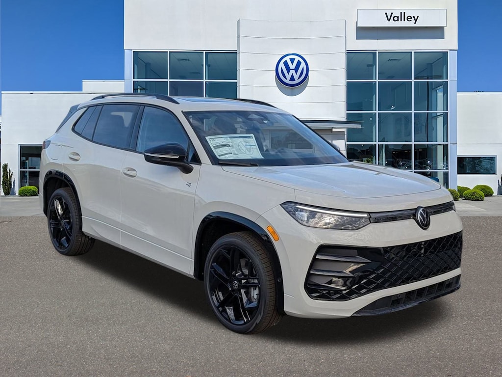 Sandstone 2026 Volkswagen Tiguan 2.0T SE R-Line Black AWD 8-Speed Automatic 2.0L TSI DOHC AWD, 4-Wheel Disc Brakes, 4-Wheel Independent Suspension, 7 Speakers, ABS brakes, Air Conditioning, Alloy wheels, AM/FM radio: SiriusXM with 360L, Auto High-beam Headlights, Auto-dimming Rear-View mirror, Automatic temperature control, Brake assist, Bumpers: body-color, Compass, Delay-off headlights, Driver door bin, Driver vanity mirror, Dual front impact airbags, Dual front side impact airbags, Electronic Stability Control, Emergency communication system, Exterior Parking Camera Rear, Four wheel independent suspension, Front anti-roll bar, Front Bucket Seats, Front Center Armrest, Front dual zone A/C, Front reading lights, Fully automatic headlights, Heads-Up Display, Heated door mirrors, Heated Front Seats, Heated front seats, Illuminated entry, Knee airbag, Leather Shift Knob, Leather steering wheel, Low tire pressure warning, Occupant sensing airbag, Outside temperature display, Overhead airbag, Overhead console, Panic alarm, Passenger door bin, Passenger vanity mirror, Perforated V-Tex Leatherette Seating Surfaces, Power door mirrors, Power driver seat, Power Liftgate, Power moonroof: Panoramic, Power steering, Power windows, Radio data system, Radio: MIB4 Composition Media Touchscreen with AM/FM, Rain sensing wipers, Rear anti-roll bar, Rear reading lights, Rear seat center armrest, Rear side impact airbag, Rear window defroster, Rear window wiper, Remote keyless entry, Security system, Speed control, Speed-sensing steering, Split folding rear seat, Spoiler, Sport steering wheel, Steering wheel mounted audio controls, Tachometer, Telescoping steering wheel, Tilt steering wheel, Traction control, Trip computer, Turn signal indicator mirrors, Variably intermittent wipers, Wheels: 20" Black Painted Alloy, AWD.
