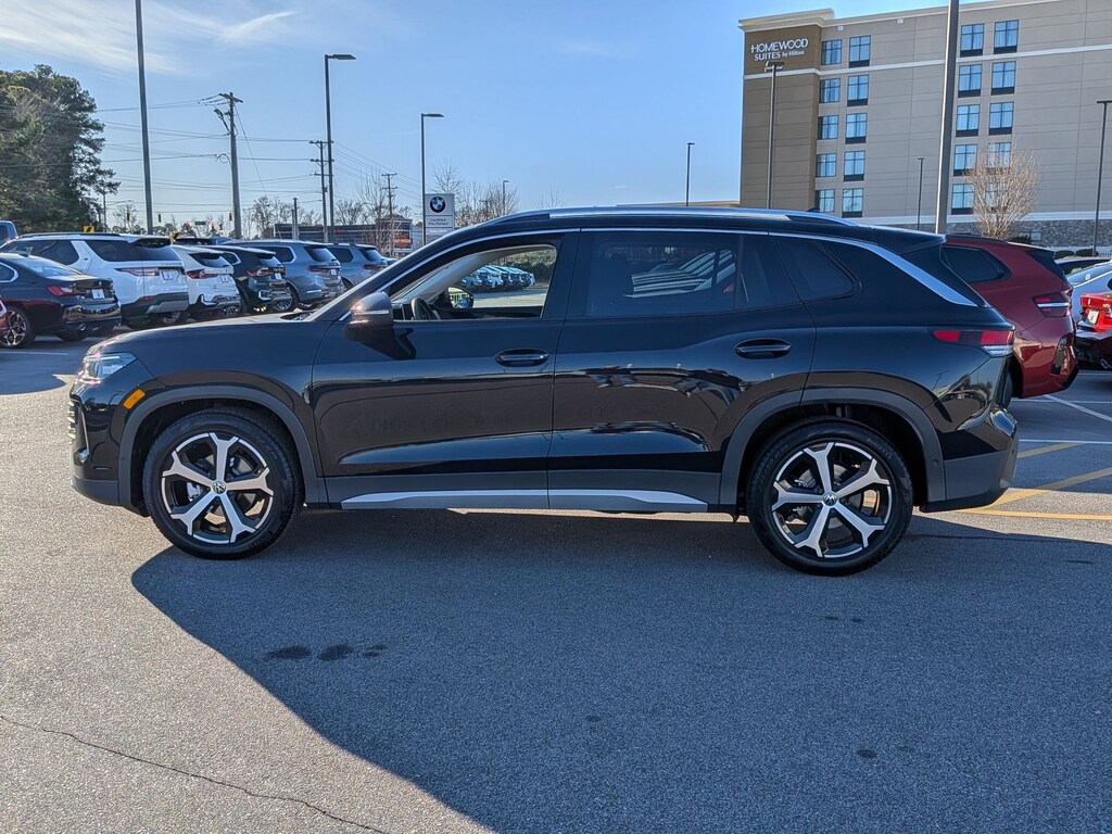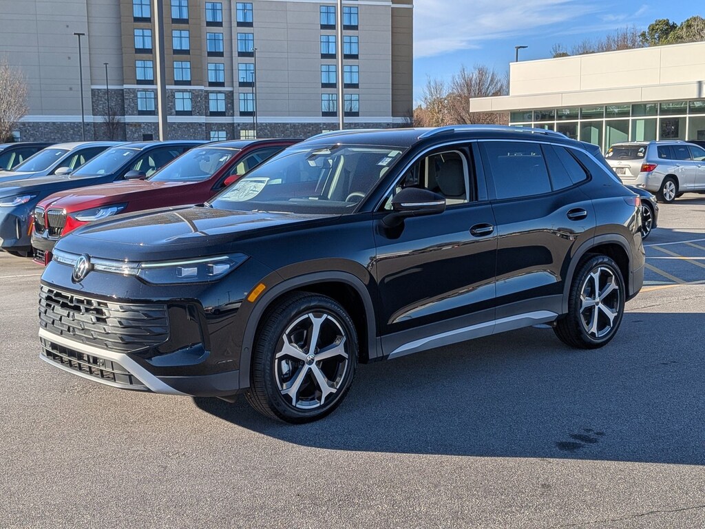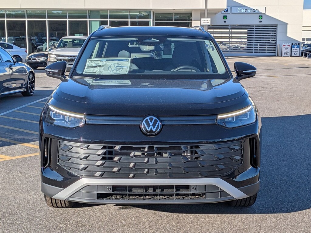 Deep Black 2026 Volkswagen Tiguan 2.0T SE FWD 8-Speed Automatic 2.0L TSI DOHC 4-Wheel Disc Brakes, 4-Wheel Independent Suspension, 7 Speakers, ABS brakes, Air Conditioning, Alloy wheels, AM/FM radio: SiriusXM with 360L, Auto High-beam Headlights, Auto-dimming Rear-View mirror, Automatic temperature control, Brake assist, Bumpers: body-color, Compass, Delay-off headlights, Driver door bin, Driver vanity mirror, Dual front impact airbags, Dual front side impact airbags, Electronic Stability Control, Emergency communication system, Exterior Parking Camera Rear, Four wheel independent suspension, Front anti-roll bar, Front Bucket Seats, Front Center Armrest, Front dual zone A/C, Front reading lights, Fully automatic headlights, Heated door mirrors, Heated Front Seats, Heated front seats, Illuminated entry, Knee airbag, Leather Shift Knob, Low tire pressure warning, Occupant sensing airbag, Outside temperature display, Overhead airbag, Overhead console, Panic alarm, Passenger door bin, Passenger vanity mirror, Perforated V-Tex Leatherette Seating Surfaces, Power door mirrors, Power driver seat, Power Liftgate, Power steering, Power windows, Radio data system, Radio: MIB4 Composition Media Touchscreen with AM/FM, Rain sensing wipers, Rear anti-roll bar, Rear reading lights, Rear seat center armrest, Rear side impact airbag, Rear window defroster, Rear window wiper, Remote keyless entry, Security system, Speed control, Speed-sensing steering, Split folding rear seat, Spoiler, Steering wheel mounted audio controls, Tachometer, Telescoping steering wheel, Tilt steering wheel, Traction control, Trip computer, Turn signal indicator mirrors, Variably intermittent wipers, Wheels: 19" 2-Tone Machined Alloy.