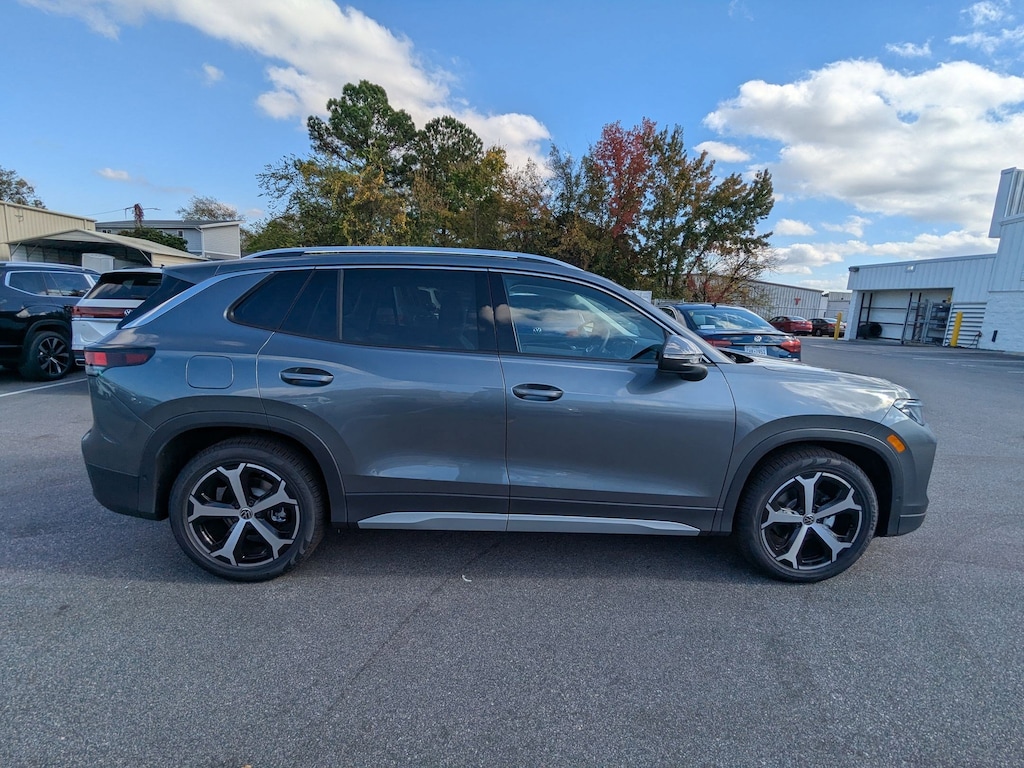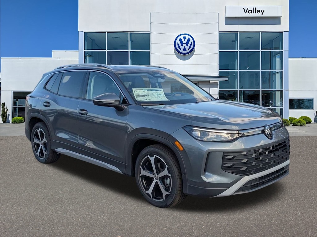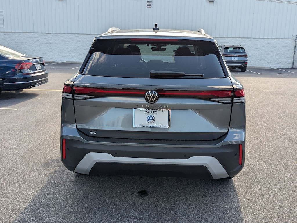 Gray 2026 Volkswagen Tiguan 2.0T SE FWD 8-Speed Automatic 2.0L TSI DOHC 4-Wheel Disc Brakes, 4-Wheel Independent Suspension, 7 Speakers, ABS brakes, Air Conditioning, Alloy wheels, AM/FM radio: SiriusXM with 360L, Auto High-beam Headlights, Auto-dimming Rear-View mirror, Automatic temperature control, Brake assist, Bumpers: body-color, Compass, Delay-off headlights, Driver door bin, Driver vanity mirror, Dual front impact airbags, Dual front side impact airbags, Electronic Stability Control, Emergency communication system, Exterior Parking Camera Rear, Four wheel independent suspension, Front anti-roll bar, Front Bucket Seats, Front Center Armrest, Front dual zone A/C, Front reading lights, Fully automatic headlights, Heated door mirrors, Heated Front Seats, Heated front seats, Illuminated entry, Knee airbag, Leather Shift Knob, Low tire pressure warning, Occupant sensing airbag, Outside temperature display, Overhead airbag, Overhead console, Panic alarm, Passenger door bin, Passenger vanity mirror, Perforated V-Tex Leatherette Seating Surfaces, Power door mirrors, Power driver seat, Power Liftgate, Power steering, Power windows, Radio data system, Radio: MIB4 Composition Media Touchscreen with AM/FM, Rain sensing wipers, Rear anti-roll bar, Rear reading lights, Rear seat center armrest, Rear side impact airbag, Rear window defroster, Rear window wiper, Remote keyless entry, Security system, Speed control, Speed-sensing steering, Split folding rear seat, Spoiler, Steering wheel mounted audio controls, Tachometer, Telescoping steering wheel, Tilt steering wheel, Traction control, Trip computer, Turn signal indicator mirrors, Variably intermittent wipers, Wheels: 19" 2-Tone Machined Alloy.