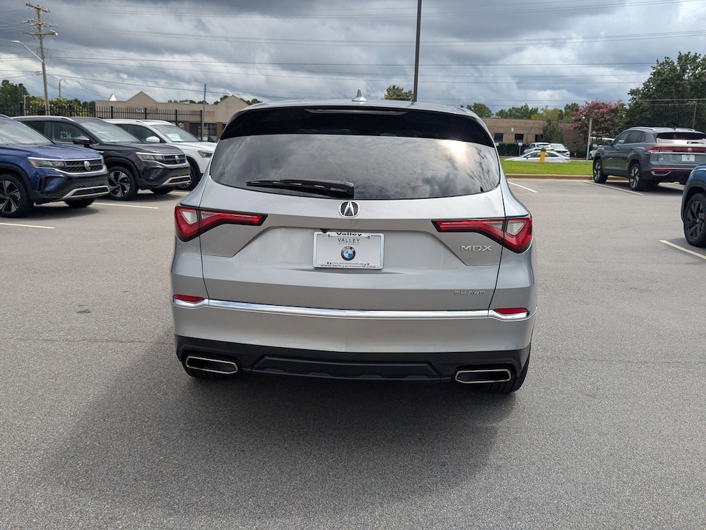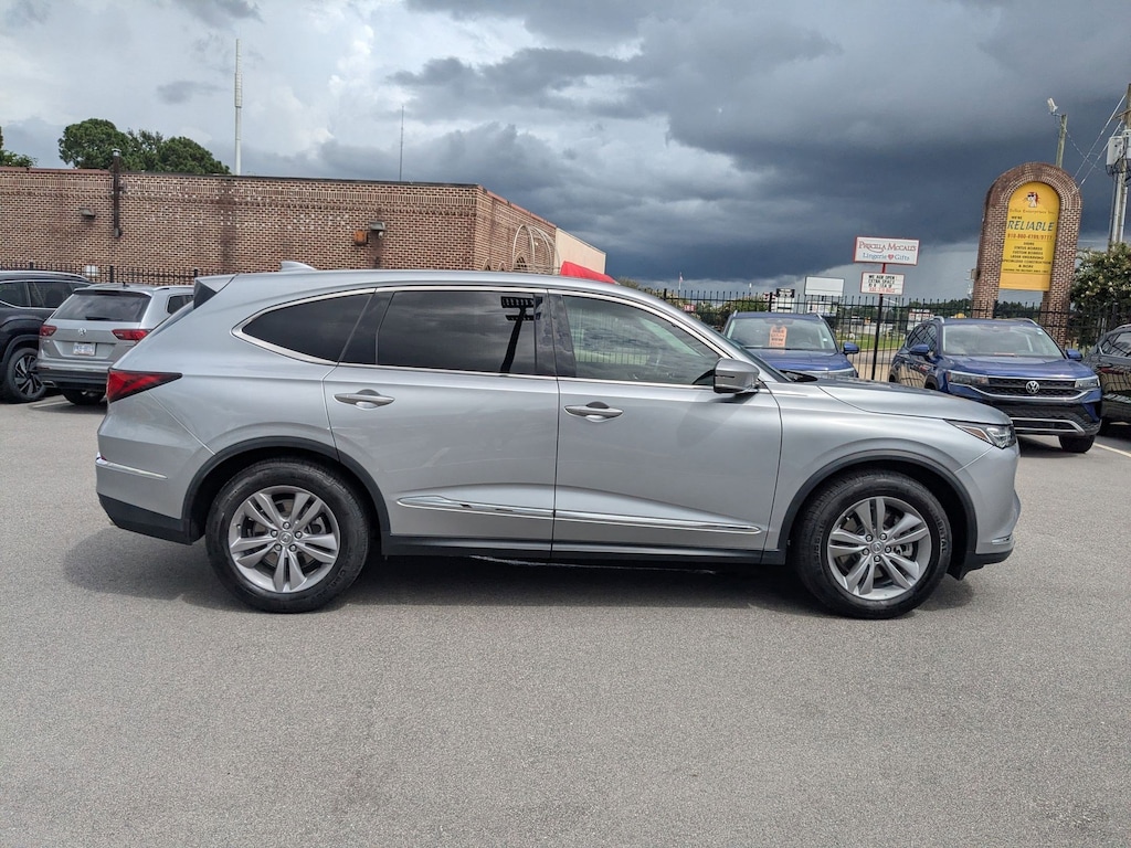 CARFAX One-Owner. Clean CARFAX. Silver Metallic 2023 Acura MDX 3.5L SH-AWD AWD 10-Speed Automatic V6 Ebony w/Leatherette Trimmed Seats, 19" x 8.5" Aluminum Alloy Wheels, 3rd row seats: split-bench, 4-Wheel Disc Brakes, 4.17 Axle Ratio, 9 Speakers, A/V remote: CabinControl, ABS brakes, Air Conditioning, Alloy wheels, AM/FM radio: SiriusXM, Anti-whiplash front head restraints, Apple CarPlay/Android Auto, Audio memory, Auto High-beam Headlights, Auto tilt-away steering wheel, Auto-dimming Rear-View mirror, Automatic temperature control, Brake assist, Bumpers: body-color, Compass, Delay-off headlights, Driver door bin, Driver vanity mirror, Dual front impact airbags, Dual front side impact airbags, Electronic Stability Control, Emergency communication system: AcuraLink, Exterior Parking Camera Rear, Four wheel independent suspension, Front anti-roll bar, Front Bucket Seats, Front Center Armrest, Front dual zone A/C, Front reading lights, Fully automatic headlights, Garage door transmitter: HomeLink, Heated door mirrors, Heated front seats, Heated Front Sport Seats, HVAC memory, Illuminated entry, Knee airbag, Lane departure: Lane Keeping Assist System (LKAS) active, Leather steering wheel, Leatherette Trimmed Seats, Low tire pressure warning, Memory seat, Occupant sensing airbag, Outside temperature display, Overhead airbag, Overhead console, Panic alarm, Passenger door bin, Passenger vanity mirror, Power door mirrors, Power driver seat, Power Liftgate, Power moonroof, Power passenger seat, Power steering, Power windows, Radio data system, Radio: AM/FM Acura Premium Audio System, Rear air conditioning, Rear anti-roll bar, Rear reading lights, Rear seat center armrest, Rear window defroster, Rear window wiper, Remote keyless entry, Security system, Speed control, Speed-sensing steering, Speed-Sensitive Wipers, Split folding rear seat, Spoiler, Steering wheel memory, Steering wheel mounted audio controls, Tachometer, Telescoping steering wheel, Tilt steering wheel, Traction control, Trip computer, Turn signal indicator mirrors, Variably intermittent wipers, Ebony w/Leatherette Trimmed Seats.