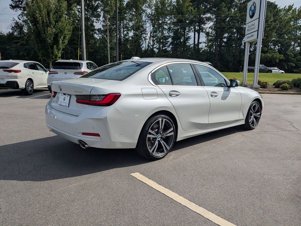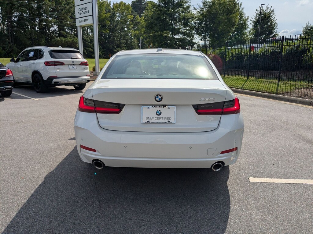 Clean CARFAX. Certified. Mineral White Metallic 2024 BMW 3 Series 330i RWD 8-Speed Automatic Sport 2.0L 4-Cylinder DOHC 16V Turbocharged BMW Certified Pre-Owned Certified, 10 Speakers, 4-Wheel Disc Brakes, ABS brakes, Air Conditioning, Alloy wheels, AM/FM radio: SiriusXM, Apple CarPlay & Android Auto Compatibility, Apple CarPlay Compatibility, Auto High-beam Headlights, Auto-dimming door mirrors, Auto-dimming Rear-View mirror, Automatic temperature control, BMW Assist eCall, BMW TeleServices, Brake assist, Bumpers: body-color, Compass, Connected Package Pro, ConnectedDrive Services, Delay-off headlights, Driver door bin, Driver vanity mirror, Dual front impact airbags, Dual front side impact airbags, Electronic Stability Control, Emergency communication system: BMW Assist eCall, Exterior Parking Camera Rear, Four wheel independent suspension, Front anti-roll bar, Front Bucket Seats, Front Center Armrest, Front dual zone A/C, Front reading lights, Fully automatic headlights, Garage door transmitter, Genuine wood console insert, Genuine wood dashboard insert, Heated door mirrors, Hi-Fi Sound System, Illuminated entry, Knee airbag, Leather Shift Knob, Leather steering wheel, Low tire pressure warning, Memory seat, Navigation, Navigation System, Occupant sensing airbag, Outside temperature display, Overhead airbag, Panic alarm, Passenger door bin, Passenger vanity mirror, Perforated Sensatec Upholstery, Power door mirrors, Power driver seat, Power Front Seats, Power moonroof, Power passenger seat, Power steering, Power windows, Radio data system, Radio: AM/FM Audio System, Rain sensing wipers, Rear air conditioning, Rear anti-roll bar, Rear reading lights, Rear seat center armrest, Rear window defroster, Remote keyless entry, Security system, SiriusXM w/360L & 1 Year Platinum Plan Subscription, Speed control, Speed-sensing steering, Speed-Sensitive Wipers, Split folding rear seat, Sport Seats, Sport steering wheel, Steering wheel mounted audio controls, Tachometer, Telescoping steering wheel, Tilt steering wheel, Traction control, Trip computer, Turn signal indicator mirrors, Variably intermittent wipers, Wheels: 18" x 7.5" Lt/Aly Double-Spoke (Style 796), Widescreen Display.