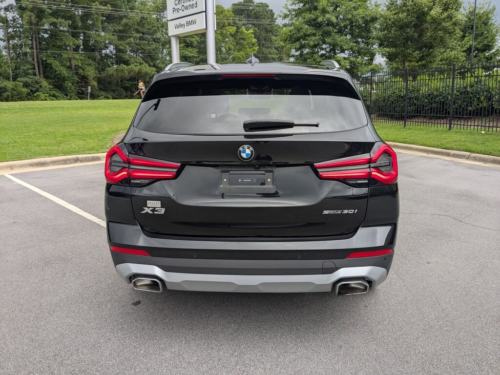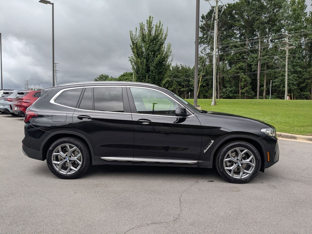 Clean CARFAX. Black Sapphire Metallic 2024 BMW X3 sDrive30i RWD 8-Speed Automatic Sport I4 8-Speed Automatic Sport, 12 Speakers, 3.385 Axle Ratio, 4-Wheel Disc Brakes, ABS brakes, Active Park Distance Control, Air Conditioning, Alloy wheels, AM/FM Radio, AM/FM radio: SiriusXM, Apple CarPlay & Android Auto Compatibility, Auto High-beam Headlights, Auto-dimming door mirrors, Auto-dimming Rear-View mirror, Automatic temperature control, BMW Assist eCall, BMW TeleServices, Brake assist, Bumpers: body-color, Comfort Access Keyless Entry, Connected Package Pro, ConnectedDrive Services, Convenience Package, Delay-off headlights, Driver door bin, Driver vanity mirror, Dual front impact airbags, Dual front side impact airbags, Electronic Stability Control, Emergency communication system: BMW Assist eCall, Enhanced USB & Bluetooth w/Smartphone Integration, Exterior Parking Camera Rear, Four wheel independent suspension, Front anti-roll bar, Front Bucket Seats, Front Center Armrest, Front dual zone A/C, Front reading lights, Fully automatic headlights, Garage door transmitter, Genuine wood dashboard insert, Genuine wood door panel insert, Heated door mirrors, Heated Front Seats, Hi-Fi Sound System, Illuminated entry, Knee airbag, Leather steering wheel, Low tire pressure warning, Lumbar Support, Memory seat, Navigation, Navigation System, Occupant sensing airbag, Outside temperature display, Overhead airbag, Panic alarm, Panoramic Moonroof, Parking Assistance Package, Parking Assistant Plus, Passenger door bin, Passenger vanity mirror, Perforated SensaTec Upholstery, Power door mirrors, Power driver seat, Power Front Seats, Power Liftgate, Power passenger seat, Power steering, Power windows, Radio data system, Rain sensing wipers, Rear air conditioning, Rear anti-roll bar, Rear reading lights, Rear seat center armrest, Rear window defroster, Rear window wiper, Rear-View Camera, Remote keyless entry, Security system, SiriusXM w/360L & 1 Yr Platinum Plan Subscription, Speed control, Speed-sensing steering, Speed-Sensitive Wipers, Split folding rear seat, Spoiler, Sport Seats, Sport steering wheel, Steering wheel mounted audio controls, Surround View w/3D View, Tachometer, Telescoping steering wheel, Tilt steering wheel, Traction control, Trip computer, Turn signal indicator mirrors, Variably intermittent wipers, Wheels: 19" x 7.5" Y-Spoke (Style 693), WiFi Hotspot, 8-Speed Automatic Sport.