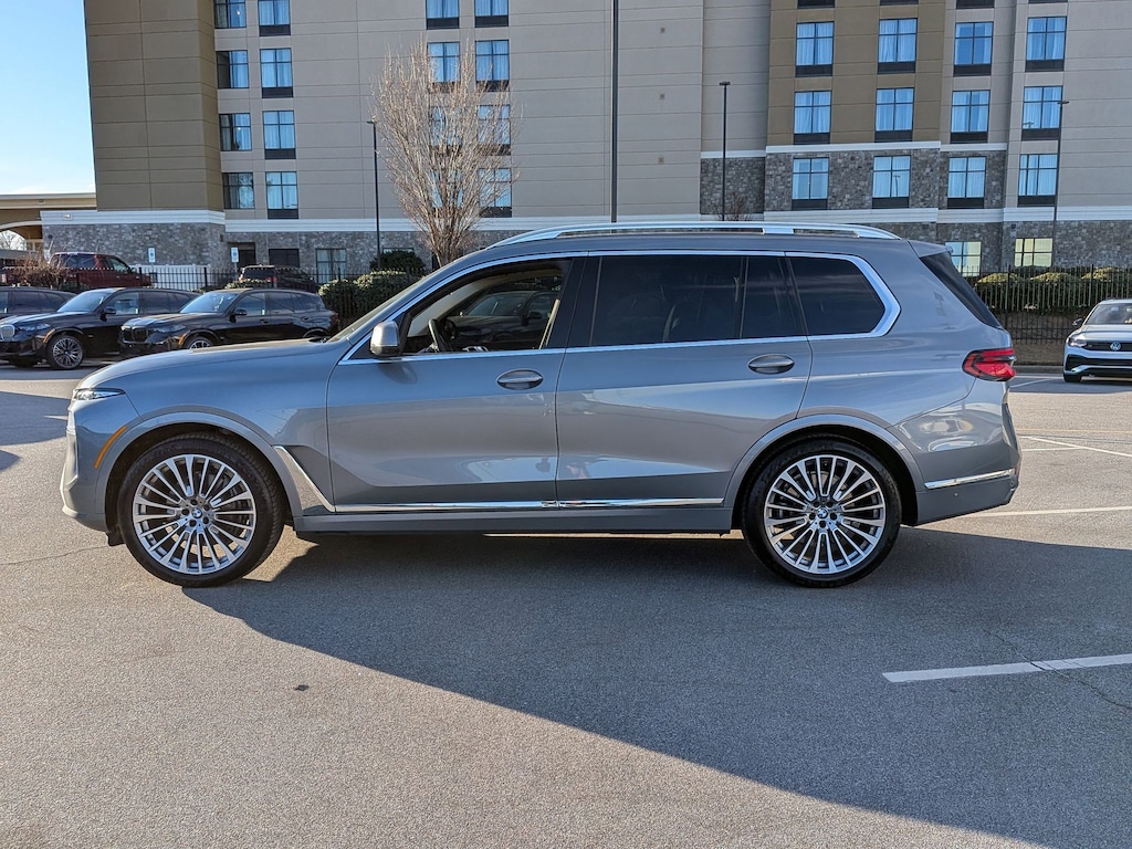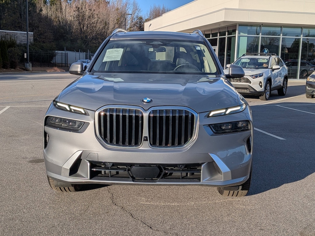 Clean CARFAX. Skyscraper Grey Metallic 2025 BMW X7 xDrive40i AWD 8-Speed Automatic Sport 3.0L I6 DOHC 24V 10 Speakers, 2nd Row Captain's Chairs, 3.64 Axle Ratio, 3rd row seats: split-bench, 4-Wheel Disc Brakes, 5-Zone Automatic Climate Control, ABS brakes, Adaptive suspension, Air Conditioning, Alloy wheels, AM/FM radio: SiriusXM with 360L, AM/FM Stereo, Apple CarPlay and Android Auto Compatibility, Apple CarPlay Compatibility, Auto High-beam Headlights, Auto tilt-away steering wheel, Auto-dimming door mirrors, Auto-dimming Rear-View mirror, Auto-leveling suspension, Automatic temperature control, BMW Assist ECall, BMW TeleServices, Brake assist, Bumpers: body-color, Climate Comfort Package, Compass, Connected Package Pro, ConnectedDrive Services, Delay-off headlights, Drive Recorder, Driver door bin, Driver vanity mirror, Dual front impact airbags, Dual front side impact airbags, Electronic Stability Control, Emergency communication system: BMW Assist eCall, Exterior Parking Camera Rear, Four wheel independent suspension, Front and Rear Heated Seats, Front anti-roll bar, Front Bucket Seats, Front Center Armrest, Front dual zone A/C, Front reading lights, Front Ventilated Seats, Fully automatic headlights, Garage door transmitter, Genuine wood console insert, Genuine wood dashboard insert, Genuine wood door panel insert, Gesture Control, Harman/Kardon Surround Sound System, Head restraints memory, Heads-Up Display, Heated door mirrors, Heated front seats, Heated Multi-Contour Seats, Heated steering wheel, Hi-Fi Sound System, Illuminated entry, Increased Top Speed Limiter, Knee airbag, Leather steering wheel, Live Cockpit Pro, Low tire pressure warning, Memory seat, Navigation system: BMW Maps Navigation, Occupant sensing airbag, Outside temperature display, Overhead airbag, Panic alarm, Parking Assistance Package, Parking Assistant Professional, Parking View with 3D View (Surround View), Passenger door bin, Passenger vanity mirror, Personal ESIM 5G, Power adjustable front head restraints, Power door mirrors, Power driver seat, Power Front Seats, Power moonroof, Power passenger seat, Power steering, Power windows, Premium Package, Radio data system, Rain sensing wipers, Rear air conditioning, Rear anti-roll bar, Rear dual zone A/C, Rear Electric Side Window Shades, Rear reading lights, Rear seat center armrest, Rear window defroster, Rear window wiper, Reclining 3rd row seat, Remote keyless entry, Security system, Sensafin Upholstery, SiriusXM Satellite Radio, Soft-Close Automatic Doors, Speed control, Speed-sensing steering, Speed-Sensitive Wipers, Split folding rear seat, Spoiler, Sport steering wheel, Steering wheel memory, Steering wheel mounted audio controls, Tachometer, Telescoping steering wheel, Tilt steering wheel, Traction control, Trailer Hitch, Trip computer, Turn signal indicator mirrors, Variably intermittent wipers, Wheels: 22" x 9.5" Front and 22" x 10.5" Rear Multi-Spoke, Wireless Charging Device.