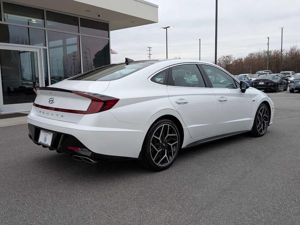 CARFAX One-Owner. Clean CARFAX. Serenity White 2023 Hyundai Sonata N Line FWD 8 Speed Dual Clutch 2.5L I4 Black Leather, 12 Speakers, 4-Wheel Disc Brakes, ABS brakes, Air Conditioning, Alloy wheels, AM/FM radio: SiriusXM, Apple CarPlay & Android Auto, Auto High-beam Headlights, Auto-dimming Rear-View mirror, Automatic temperature control, Brake assist, Bumpers: body-color, Cargo Tray, Carpeted Floor Mats, Delay-off headlights, Driver door bin, Driver vanity mirror, Dual front impact airbags, Dual front side impact airbags, Electronic Stability Control, Emergency communication system: Blue Link Connected Car Service (3-year complimentary subscription), Exterior Parking Camera Rear, First Aid Kit, Four wheel independent suspension, Front anti-roll bar, Front Bucket Seats, Front Center Armrest, Front dual zone A/C, Front reading lights, Fully automatic headlights, Garage door transmitter: HomeLink, Heated door mirrors, Heated front seats, Heated N Unique Sport Seats, Illuminated entry, Knee airbag, Leather Seating Surfaces, Leather steering wheel, Low tire pressure warning, Mud Guards, Navigation System, Occupant sensing airbag, Option Group 01, Outside temperature display, Overhead airbag, Overhead console, Panic alarm, Passenger door bin, Passenger vanity mirror, Power door mirrors, Power driver seat, Power moonroof, Power steering, Power windows, Radio data system, Radio: AM/FM/MP3/HD/SiriusXM Display Audio w/Nav, Rear anti-roll bar, Rear seat center armrest, Rear side impact airbag, Rear window defroster, Remote keyless entry, Security system, Speed control, Speed-sensing steering, Speed-Sensitive Wipers, Split folding rear seat, Spoiler, Steering wheel mounted audio controls, Tachometer, Telescoping steering wheel, Tilt steering wheel, Traction control, Trip computer, Trunk Cargo Net, Turn signal indicator mirrors, Variably intermittent wipers, Wheels: N Unique 19" x 8.0J Aluminum Alloy, Black Leather.