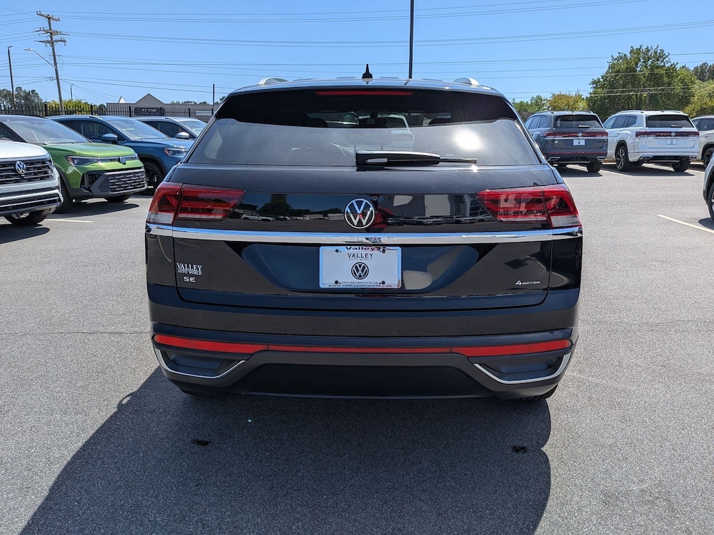 CARFAX One-Owner. Deep Black 2023 Volkswagen Atlas Cross Sport 2.0T SE AWD 8-Speed Automatic with Tiptronic 2.0L TSI 3.60 Axle Ratio, 4-Wheel Disc Brakes, 6 Speakers, ABS brakes, Air Conditioning, Alloy wheels, Auto-dimming Rear-View mirror, Brake assist, Bumpers: body-color, Compass, Delay-off headlights, Driver door bin, Driver vanity mirror, Dual front impact airbags, Dual front side impact airbags, Electronic Stability Control, Emergency communication system: VW Car-Net Safe & Secure 5-year, Exterior Parking Camera Rear, First Aid Kit, Four wheel independent suspension, Frameless Auto-Dimming Rearview Mirror, Front anti-roll bar, Front Bucket Seats, Front Center Armrest, Front fog lights, Front reading lights, Fully automatic headlights, Heated Comfort Front Bucket Seats, Heated door mirrors, Heated front seats, Heavy Duty Trunk Liner w/VW CarGo Blocks, Illuminated entry, Leather Shift Knob, Low tire pressure warning, Occupant sensing airbag, Outside temperature display, Overhead airbag, Overhead console, Panic alarm, Passenger door bin, Passenger vanity mirror, Perforated V-Tex Leatherette Seating Surfaces, Power door mirrors, Power driver seat, Power steering, Power windows, Privacy Cover, Radio data system, Radio: Composition Color w/6.5" Touchscreen, Rain sensing wipers, Rear anti-roll bar, Rear reading lights, Rear seat center armrest, Rear window defroster, Rear window wiper, Remote keyless entry, Roadside Assistance Kit, Rubber Mats Kit, Security system, Security Wheel Locks & Dust Caps (4 each) (DISC), Speed control, Speed-sensing steering, Split folding rear seat, Spoiler, Standard Suspension, Steering wheel mounted audio controls, Tachometer, Telescoping steering wheel, Tilt steering wheel, Traction control, Trip computer, Turn signal indicator mirrors, Variably intermittent wipers, VW Care, Wheels: 18" x 8J 5-Spoke 2-Tone Machined Alloy.