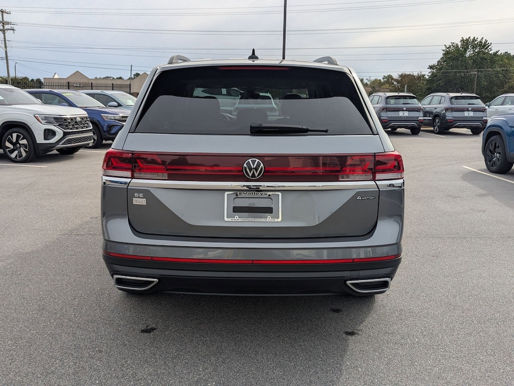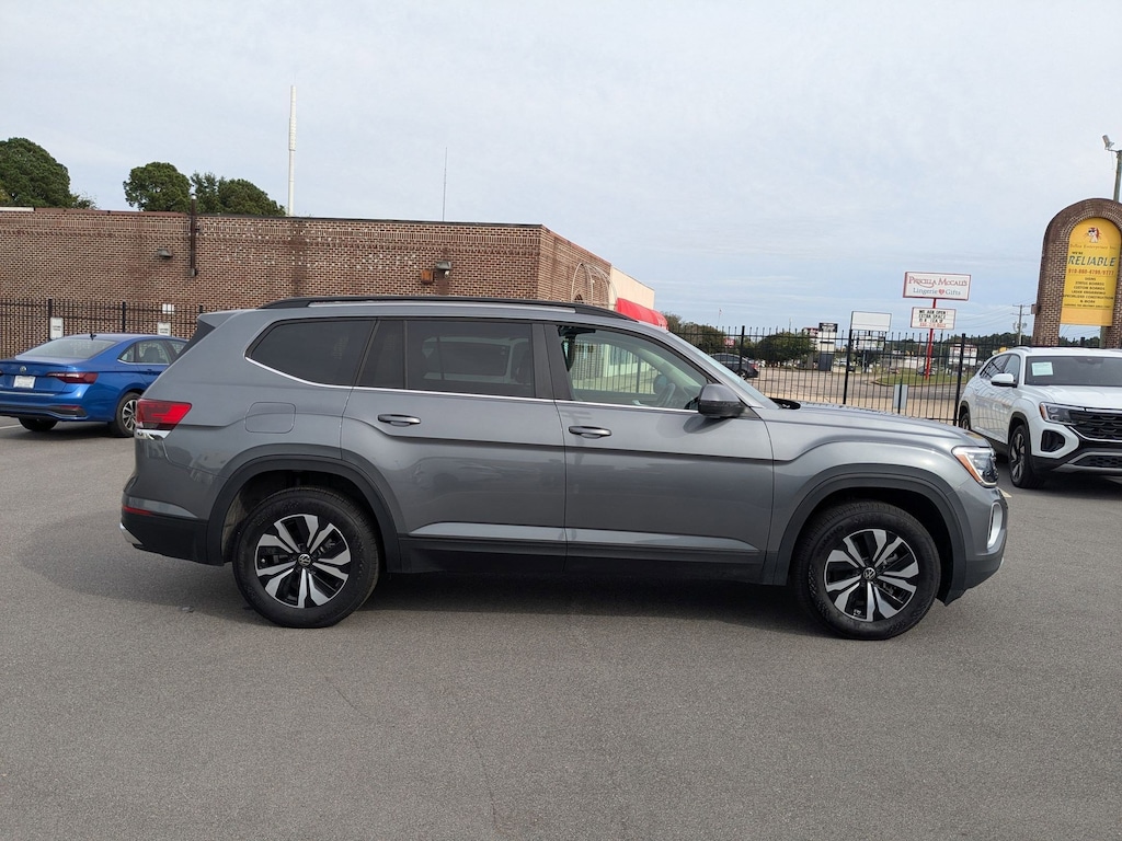 Clean CARFAX. Platinum Grey 2025 Volkswagen Atlas 2.0T SE AWD 8-Speed Automatic with Tiptronic 2.0L TSI 3rd row seats: split-bench, 4-Wheel Disc Brakes, 6 Speakers, ABS brakes, Air Conditioning, Alloy wheels, AM/FM radio: SiriusXM with 360L, Auto High-beam Headlights, Auto-dimming Rear-View mirror, Automatic temperature control, Brake assist, Bumpers: body-color, Compass, Delay-off headlights, Driver door bin, Driver vanity mirror, Dual front impact airbags, Dual front side impact airbags, Electronic Stability Control, Emergency communication system: VW Car-Net Safe & Secure 5-year, Exterior Parking Camera Rear, Four wheel independent suspension, Four-wheel Independent Suspension, Front anti-roll bar, Front Bucket Seats, Front Center Armrest, Front dual zone A/C, Front fog lights, Front reading lights, Fully automatic headlights, Heated & Actively Ventilated Front Bucket Seats, Heated door mirrors, Heated front seats, Heated steering wheel, Illuminated entry, Low tire pressure warning, Occupant sensing airbag, Outside temperature display, Overhead airbag, Overhead console, Panic alarm, Passenger door bin, Passenger vanity mirror, Perforated V-Tex Leatherette Seating Surfaces, Power door mirrors, Power driver seat, Power steering, Power windows, Radio data system, Radio: MIB3 Composition Media, Rain sensing wipers, Rear air conditioning, Rear anti-roll bar, Rear reading lights, Rear seat center armrest, Rear window defroster, Rear window wiper, Remote keyless entry, Security system, Speed control, Speed-sensing steering, Split folding rear seat, Spoiler, Steering wheel mounted audio controls, Tachometer, Telescoping steering wheel, Tilt steering wheel, Traction control, Trip computer, Turn signal indicator mirrors, Variably intermittent wipers, Ventilated front seats, Wheels: 18" 2-Tone Machined Alloy.